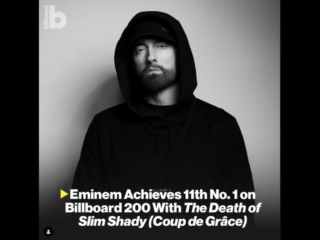 The king is back. Eminem achieves his 11th No. 1 on the #Billboard200 with 'The Death of Slim Shady (Coup de Grâce).'